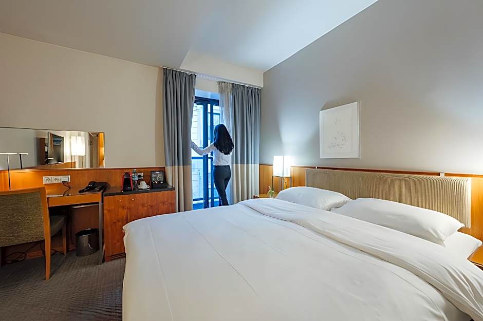This compact room comes with free high speed internet and WiFi, tea and coffee making facilities and a working desk. Underfloor heating, a cosmetic mirror, an electronic door lock and a modern bathroom with granite and porcelain sanitary ware are available for use.
